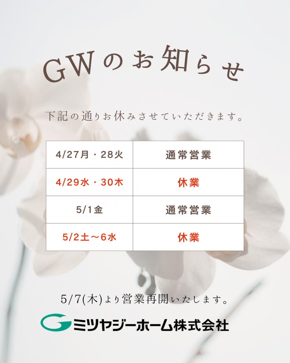 GW営業日のお知らせ