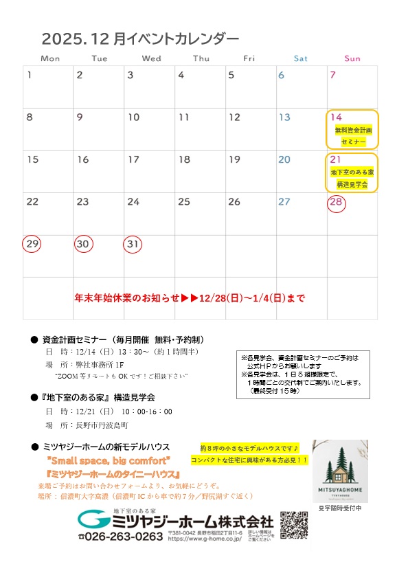 12/21(日)『地下室のある家』構造見学会開催!(長野市)ご予約受付中