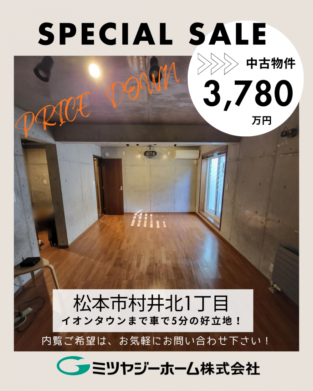 『地下室のある家』中古住宅お値下げします(松本市村井北)